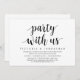 Tarjeta de invitación de boda de fuga con tema de guión moderno (Fiesta con nosotros). Es perfecta para su cena de boda de fuga informal junto al lago, baile y fiesta.