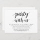 Tarjeta de invitación de boda con tema de escritura moderna (Fiesta con nosotros). Es perfecta para su cena de boda informal junto al lago, baile y fiesta.