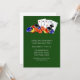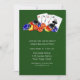 Una invitación perfecta para despedidas de soltero o eventos de casino. El diseño incluye fichas de póquer, dados y cartas de juego que muestran 4 ases sobre un fondo verde con textura de fieltro.