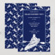 Estas invitaciones para fiestas son perfectas para organizar una fiesta de cumpleaños con tema de remo en kayak u otro evento especial en honor a los kayakistas. Presentan ilustraciones de kayakistas en kayaks en blanco con peces azul claro sobre un fondo azul marino. La letra blanca en negrita es fácil de personalizar con todos los detalles de tu fiesta.