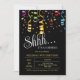 Invitación Fiesta Confetti Ribbon Black Surprise Cumpleaños