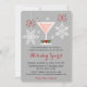 Añada una cierta chispa y consiga en el alcohol del día de fiesta con este navidad rosado lindo y festivo de la empresa de negocios de martini y del copo de nieve e invitaciones corporativos de las fiestas en la oficina del día de fiesta. El vidrio de martini con una paja de la hierbabuena tiene un acebo en su base con las hojas verdes y las bayas rojas. Los ornamentos blancos del copo de nieve cuelgan feliz de arcos rojos de la cinta. Un modelo de lunar rojo y blanco en el fondo trasero y gris en el frente. Perfecto invite para la compañía que quiere celebrar a sus empleados leales y y los clientes importantes durante el navidad, los Años Nuevos y el invierno sazonan. © Chrissy H. Studios, LLC de las ilustraciones. Todos los derechos reservados.