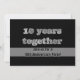 Crea tus propias invitaciones personalizadas para el décimo aniversario - En la parte delantera hay texto en 3D que parece metal gris cepillado, estaño o aluminio. Dice 10 años juntos. Sobre una tira translúcida con letras sombreadas en negro dice Estás invitado a una fiesta de aniversario. La parte trasera tiene letras con apariencia 3D en negro para la información personalizada de tu fiesta de aniversario de bodas número 10. Personaliza como quieras. Visita nuestra tienda en línea de Zazzle angela65 para encontrar muchos otros suministros para la fiesta de décimo aniversario.