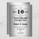 Invitación de Fiesta de 10º Aniversario de Boda. Tarjeta de invitación plateada y negra. Perfecta para una celebración elegante. Puede ser personalizada para cualquier año.