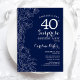 Floral azul marino y blanco sorpresa 40 cumpleaños invitación a fiesta. Diseño moderno minimalista con acentos botánicos y tipo de letra de escritura tipográfica. Sencilla tarjeta de invitación floral perfecta para una elegante celebración de cumpleaños sorpresa femenina. Se puede personalizar a cualquier edad. Invitaciones Zazzle impresas o una plantilla imprimible digital de descarga instantánea.