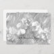 Un diseño de flores y encaje blanco sobre blanco adorna el frente de esta elegante invitación de doble cara para la celebración del 50 aniversario de bodas. El reverso tiene letras negras sobre fondo blanco. ¡Muy elegante! Puede cambiar fácilmente el texto para el nombre, título del evento, fecha, ubicación, etc. Fotografía floral original de MarciaSocolik. Todos los derechos reservados © 2015 Alan & Marcia Socolik.