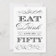 Invitación Fiesta de 50 cumpleaños come bebida y cumple 50 añ