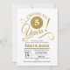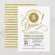 Invitación a la Fiesta de 5to Aniversario de Boda. Diseño elegante en dorado y blanco con brillo falso. Cuenta con tipografía moderna en fuente de letra script. ¡Salud por 5 años! Puede ser personalizado para cualquier año. Por favor envíeme un mensaje si necesita una personalización adicional.