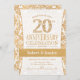 Invitación a la fiesta de aniversario de bodas 20 en blanco y dorado.