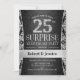 Invitación a la fiesta sorpresa de aniversario de bodas 25 en negro y plata.