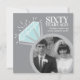 Invite a sus amigos y familiares a una fiesta especial de aniversario de bodas de diamantes de 60 años o una cena de celebración con estos anillos de eternidad de diamantes gráficos con destellos grises, azul claro y blanco, con una invitación de dos fotos. Personalizado con sus propias fotos del día de su boda y una foto actual en el reverso, luego agregue sus propias palabras de celebración, fecha y lugar de la fiesta. Otros artículos coincidentes disponibles. Arte y diseño gráfico original del anillo por www.mylittleeden.com en zazzle.