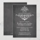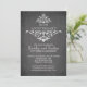 Hermosa invitación de aniversario con pizarra que presenta un elegante florecimiento de hojas de damasco blanco vintage sobre un fondo moderno de pizarra negra. Disponible en nuestra tienda en una amplia selección de colores modernos y de moda. ¡Los pedidos personalizados son siempre bienvenidos! Fácil de personalizar con la información de su fiesta de aniversario y se puede personalizar para un 25 aniversario de bodas, 30 aniversario de bodas, 35 aniversario de bodas, 40 aniversario de bodas, 45 aniversario de bodas, 50 aniversario de bodas, 55 aniversario de bodas, 60 aniversario de bodas.