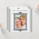 Invitación a la fiesta de aniversario de bodas de 25 años con fotografía azul turquesa y plata.