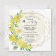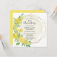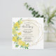 Invitación de aniversario de bodas de 50 años perfecta para primavera o verano. Las flores de rosas amarillas y mimosa decoran un elegante marco geométrico dorado. Todo el texto se puede editar.