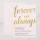Una invitación de fiesta de aniversario de boda glamorosa que presenta la frase "Por siempre y siempre" escrita en un bonito guión de caligrafía con un aspecto de lámina de oro falsa, y un fondo rosa claro. El texto se puede personalizar para adaptarse a cualquier aniversario.
