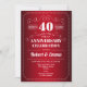 Invitación de fiesta de aniversario de boda 40. Diseño simple de estilo retro en rojo rubí y blanco. Cuenta con una fuente de tipografía elegante. ¡Salud por 40 años! Perfecto para una celebración elegante. Se puede personalizar para cualquier año.
