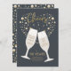La invitación de la fiesta de aniversario con elegancia retro presenta tipografía dorada "Brindis por 50 años" y copas de champán con burbujas que forman un corazón. Se muestra aquí como una invitación de aniversario cincuenta, pero puede personalizarla para cualquier número de años que se aplique a su ocasión. ¡Brindis por usted!