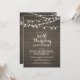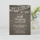 Celebre su día especial con esta invitación de aniversario de boda rústica. Este diseño presenta tipografía de letra estilizada y luces de cuerda en un fondo de madera rústica. Perfecto para una fiesta de jardín, fiesta de granero o fiesta de otoño.
