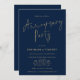 Fiesta de aniversario de boda elegante con guión azul marino y dorado. Este diseño moderno tiene un conjunto informal elegante de guión para la fiesta de aniversario y el resto de la tipografía que puede personalizar fácilmente. También puede cambiar los colores del texto y del fondo en ambos lados si lo desea a través de la opción Editar más.