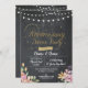 Cambia el texto para adaptarlo a tu cena de aniversario de boda. Esta invitación rústica de pizarra de tiza con detalles dorados es perfecta para un look elegante y romántico. Incluye impresión trasera