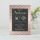 Rosa oro en patrón geométrico moderno, marco negro en diseño simple y elegante de zig zag. Tarjeta de invitación moderna de aniversario de boda de 30 años en rosa oro.
