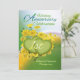 Flores amarillas refrescantemente hermosas que rodean dos corazones verdes que flotan en una suave curva de sol dorado a través de esta invitación única para la celebración del primer aniversario de bodas. El nombre en la parte frontal y todo el texto en la parte posterior pueden personalizarse utilizando la plantilla proporcionada. Arte y diseño original de Anura Design Studio. Si desea un año que no esté en mi tienda, por favor contácteme y lo agregaré solo para usted.