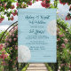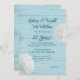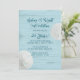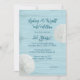 Invitación de fiesta de aniversario de bodas con tema de playa con dólares de arena y diseño de madera azul. El texto azul verdoso oscuro es fácil de personalizar sobre un fondo de textura de madera azul claro. Dos dólares de arena naturales también decoran los bordes del papel. Elija actualizar con uno de los papeles especiales ofrecidos.