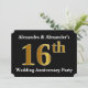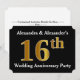 Este diseño de invitación presenta el número ordinal "16º" con una apariencia similar al oro falso. También incluye nombres personalizados. Podría ser utilizado para la fiesta de aniversario de bodas de dieciséis años de una pareja casada.