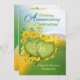 Flores amarillas refrescantemente hermosas que rodean dos corazones verdes flotando en una suave curva de sol dorado a través de esta invitación única para la fiesta de celebración del 30 aniversario de bodas. El nombre en la parte frontal y todo el texto de la parte trasera pueden personalizarse utilizando la plantilla proporcionada. Arte y diseño original de Anura Design Studio. Si desea un año que no está en mi tienda, por favor contácteme y lo agregaré solo para usted.