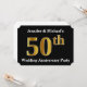 Este diseño de invitación presenta el número ordinal "50" con una apariencia similar al oro falso. También incluye nombres personalizados. Podría utilizarse para la fiesta de aniversario de bodas número cincuenta de una pareja casada.