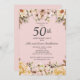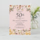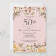 Invitación elegante, vintage, rosa, champán y floral de marfil para la fiesta de aniversario de bodas de 50 años. Contáctenos para obtener ayuda con la personalización o para solicitar productos coincidentes.