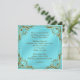 Invitación a la fiesta de aniversario de bodas de 50 años en azul turquesa y oro.