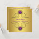Invitación de fiesta de aniversario de bodas de 50 años con joya de remolino de púrpura y oro. Agregue sus datos en la parte delantera y/o trasera simplemente eligiendo el botón naranja "¡Personalízalo!" para comenzar a agregar los detalles de su evento, estilo de fuente, tamaño y color de la fuente, y redacción. Tenga en cuenta que todas las decoraciones de pastel, tarjetas y diseños de invitaciones que encontrará en Zazzle son gráficos impresos sin joyas reales, lazos, partes o piezas elevadas, grabadas o agregadas.