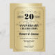 Invitación para fiesta de aniversario de bodas número 20. Tarjeta de invitación dorada y negra. Perfecta para una celebración elegante. Puede ser personalizada para cualquier año.
