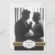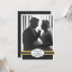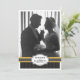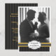 Presenta a la celebrada pareja con una foto de boda original o una foto de hoy en esta hermosa invitación de tarjeta de fiesta en negro, blanco y dorado. Un texto elegante con un sutil fondo a rayas de esmoquin con un acento de cinta falsa en la parte frontal que presenta una gran foto de la pareja especial y hace una hermosa presentación para familiares y invitados. Cada línea de texto se personaliza fácilmente para adaptarse perfectamente a tus necesidades y planes de fiesta.