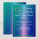Elegantes gemas de alejandrita en forma de corazón falso, diamantes en forma de lágrima y formas de diamantes circulares sobre un fondo degradado de verde azulado a azul y un marco de esquina escalonada de tono de alejandrita profundo para invitaciones de fiesta de aniversario de bodas número 55. Diseño original de Holiday Hearts Designs (derechos reservados). Si tiene alguna pregunta o necesita ayuda con el diseño, por favor envíenos un mensaje o un correo electrónico directamente a info@holidayheartsdesigns.com, y estaremos encantados de ayudarle siempre que sea posible. Para preguntas sobre producción, envío y entrega, por favor contacte directamente con el Servicio de Atención al Cliente de Zazzle. Holiday Hearts Designs es un estudio de diseño profesional con más de 10 años de experiencia en Zazzle y muchas reseñas de clientes satisfechos, por lo que cuando compre con nosotros, puede estar seguro de que se ha prestado la máxima atención a cada detalle para crear la calidad profesional que nuestros clientes