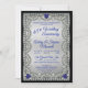 Formas elegantes con apariencia de diamantes falsos sobre un fondo negro y gradiente tonos plateados y corazoncitos de espinela azul en forma de gemas falsas en las invitaciones de la fiesta de aniversario de boda. Diseño original de Holiday Hearts Designs (derechos reservados). Si tiene alguna pregunta o necesita ayuda con el diseño, por favor envíenos un mensaje o un correo electrónico directamente a info@holidayheartsdesigns.com, y estaremos encantados de ayudarle siempre que sea posible. Para preguntas sobre producción, envío y entrega, por favor contacte directamente con el Servicio de Atención al Cliente de Zazzle. Holiday Hearts Designs es un estudio de diseño profesional con más de 10 años de experiencia en Zazzle y muchas críticas positivas de clientes satisfechos, así que cuando compre con nosotros, puede estar seguro de que se ha prestado la máxima atención a cada detalle para crear la calidad profesional que nuestros clientes esperan.