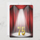 Invitación a la fiesta de aniversario de bodas número 75 con un foco y números dorados.
