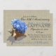 Elegante hortensia azul en una concha marina con el toque rústico de un fondo de aspecto arpillera para una fiesta de aniversario con tema de playa o cualquier ocasión.