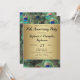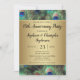 Invitación de fiesta de aniversario personalizable para cualquier año... Fondo elegante y refinado de pluma de pavo real en colores ricos y saturados de azul real, dorado cobrizo y verde esmeralda. El pavo real es un ave majestuosa con plumas ornamentales y hace una hermosa exhibición para una fiesta de verano o cualquier ocasión. Los gradientes dorados con aspecto metálico añaden un toque de glamour y refinamiento.
