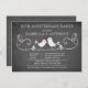 La invitación de moda de la fiesta de aniversario del boda de la pizarra del vintage que ofrece una pizarra popular de la pizarra con un par lindo de pájaros del amor con un corazón que se sienta en un flourish de lujo ramifica. Para un tacto especial adicional la parte posterior de nuestras invitaciones coordina con nuestro diseño delantero. Perfeccione la invitación moderna del aniversario para cualquier aniversario, el 25to, trigésimo aniversario de boda, el 40.o aniversario, el 50.o aniversario, el 10mo aniversario, el 5to aniversario, el 60.o aniversario o el 75.o aniversario.