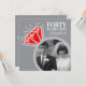 Invite a sus amigos y familiares a una fiesta especial de aniversario de bodas de rubí de 40 años o celebración de cena con estas invitaciones gráficas de anillo de eternidad de rubí con dos fotos en gris, rojo y blanco. Personalizadas con sus propias fotos del día de la boda de la pareja y una foto actual en el reverso, luego agregue sus propias palabras de celebración, fecha y lugar de la fiesta. Otros artículos coincidentes disponibles. Arte gráfico y diseño original del anillo por www.mylittleeden.com en zazzle.