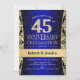 Invitación a la fiesta de bodas de aniversario número 45 en azul zafiro, negro y dorado.