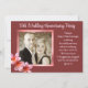 Invitación a la fiesta de aniversario de boda con plantilla de foto. Las flores de plumeria rosadas y el papel vintage rojo rosa crean una invitación elegante con plantillas de texto fáciles de usar. Sube una foto de la pareja que está enmarcada en un marco rosa degradado. El texto está en fuente de caligrafía manuscrita en rosa muy claro. Toda la información de la fiesta se agrega en un párrafo con una línea adicional en la parte superior para el título de la fiesta. Hecha para una celebración de aniversario, pero esta invitación funcionaría para cualquier ocasión, incluyendo una boda informal.