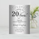 Invitación de celebración de aniversario 20 sorpresa plateada. Diseño elegante con lámina de plata brillante falsa. Cuenta con fuente de letra script negra y confeti de diamantes. ¡Salud por 20 años! Se puede personalizar para mostrar cualquier año de matrimonio. Envíame un mensaje si necesitas más personalización.