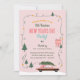 Invitación Fiesta de Año Nuevo Retro con Coche Antiguo Rosa