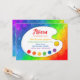 Esta colorida invitación de cumpleaños es perfecta para un fiesta de pintura. Hágale saber a sus invitados que las cosas pueden ponerse complicadas y que todos seguramente sufrirán una explosión. Todo el texto es personalizable para satisfacer las necesidades de su fiesta.