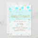 Invitaciones de Baby Shower de lunares y corazones en azul, dorado y blanco