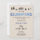 Una plantilla moderna, elegante y de moda de fin de semana de una fiesta de soltero con un tema de camping y denim y diamantes, con denim y diamantes de imitación en el título "camping" (¡esto es un efecto digital, no verdaderos diamantes de imitación!), camping a mano e íconos al aire libre (campo de bomberos, malvaviscos, tienda, lámpara, etc.) con una textura moderna y angustiada. Una elección encantadora y divertida para un fin de semana de soltero glam de divertidos camping, senderismo o en cualquier parte al aire libre.