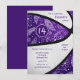 Esta invitación de celebración de baloncesto adorable presenta la imagen realista de una pelota de baloncesto estilizada y abstractamente sobredimensionada que tiene paneles alternados morados y blancos - un patrón de garabatos de paisley, flores y plumas en blanco cubre los paneles morados de la pelota de baloncesto - personalice con los detalles de su fiesta - por katz_d_zynes